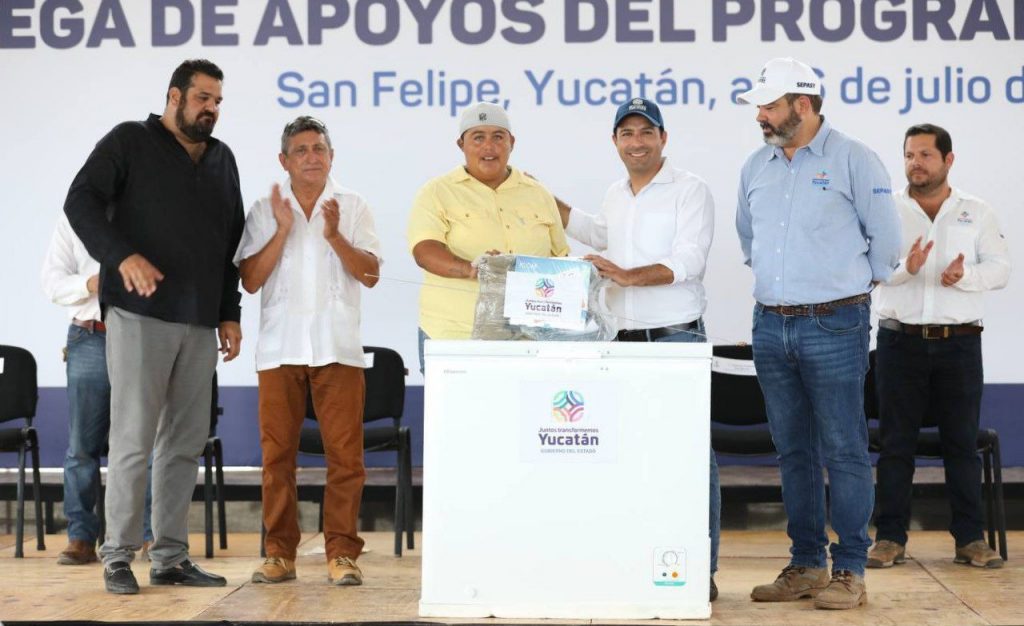 Entre las personas que recibieron este respaldo está Vanessa Candelaria Díaz Marrufo, quien obtuvo una radio con pantalla grande, su antena, 4 metros de malla sombra y congelador horizontal de 7 pies, y agradeció al Gobernador por esta estrategia, ya que sus beneficios impactan directamente en las familias pesqueras de San Felipe y las zonas aledañas.