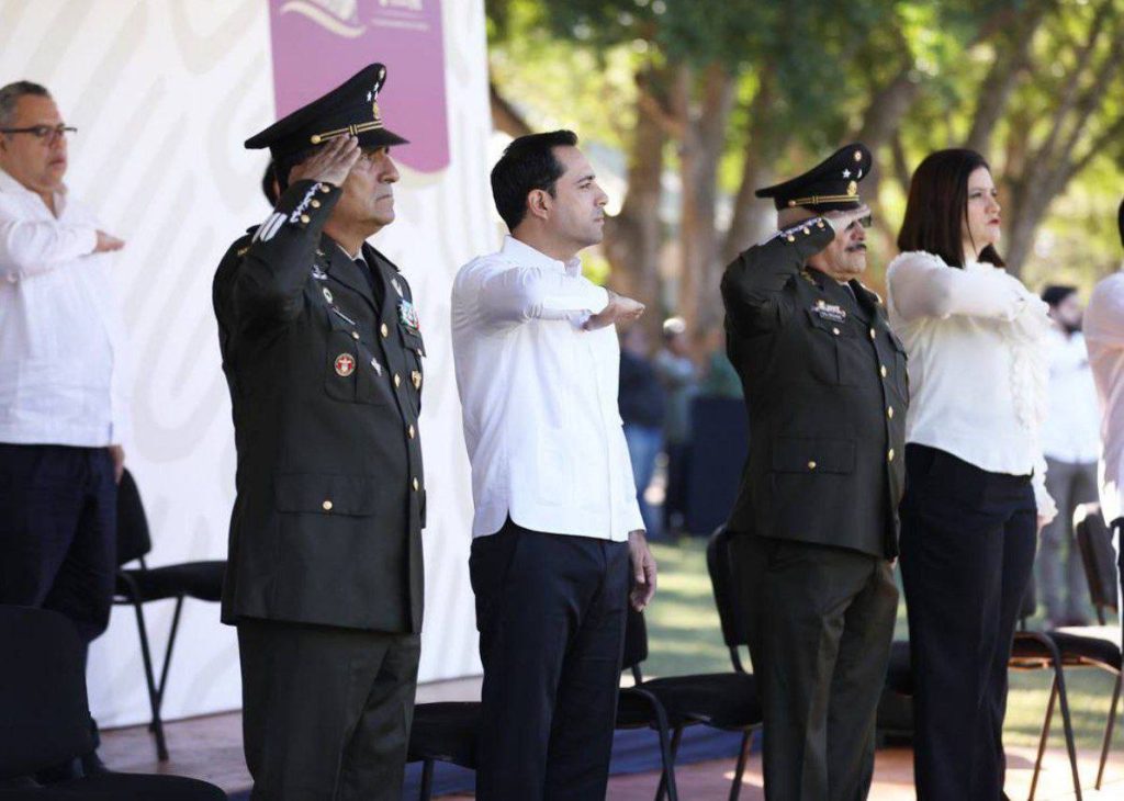 Mérida, Yucatán, 16 de enero de 2023.- El Gobernador Mauricio Vila Dosal asistió a la ceremonia de cambio de mando de la 32 Zona Militar, con sede en Valladolid, donde el General de Brigada Federico Eduardo Solórzano Barragán, rindió protesta como responsable de esa comandancia.
