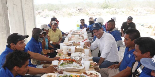 En una amena platica y convivencia con 28 alarifes que trabajan en la construcción de 56 casas tipo ensamble del complejo habitacional “Lajas Yucatán” ubicado al norte de Mérida, Vila Dosal compartió algunos de los proyectos que se están realizando para continuar con la transformación de Yucatán.