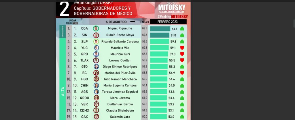 En el Ranking Mitofsky “Capítulo: Gobernadores y gobernadoras de México” sobre aprobación ciudadana, realizado para El Economista, se detalla que solo tres gobernadores logran en sus estados mejor aprobación que el presidente López Obrador y son; Aguascalientes, Yucatán y Ciudad de México.