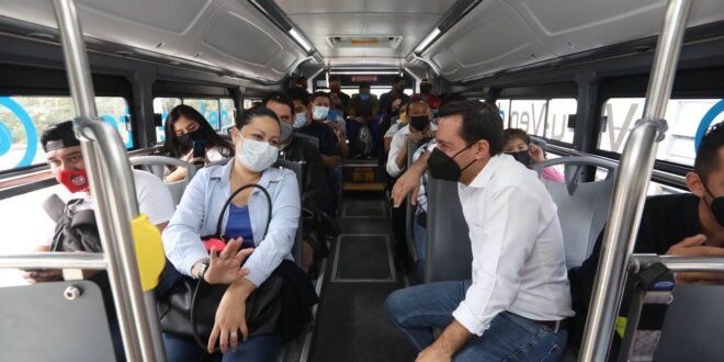 Mérida, Yucatán, 21 de enero de 2022.- El Gobernador Mauricio Vila Dosal constató el buen funcionamiento de la Ruta Periférico del nuevo sistema de transporte metropolitano “Va y ven”, que cumple 2 meses de operaciones y sigue consolidándose como un servicio de primera, con diversos beneficios para sus usuarios, y que marca el inicio del futuro en este rubro para Mérida y Yucatán.