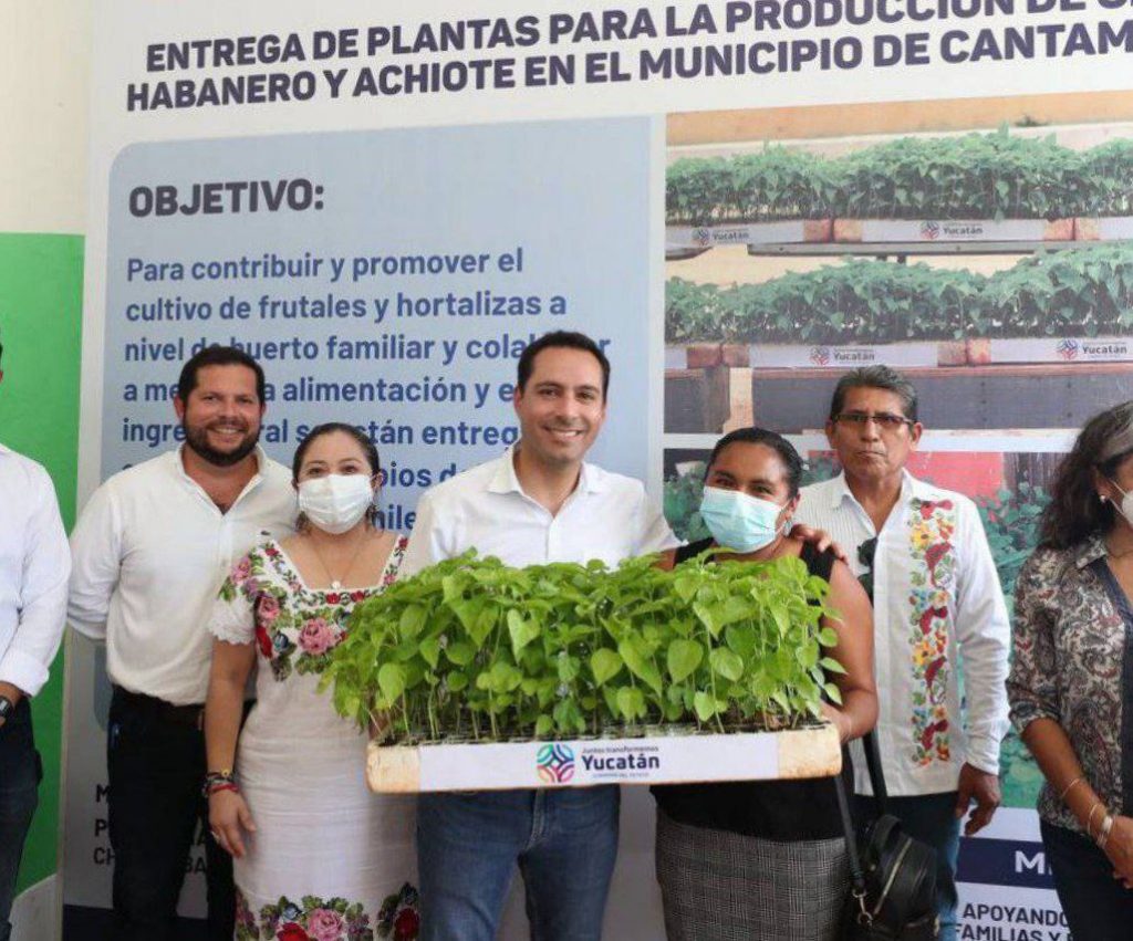 También, el Gobernador brindó 10 charolas de chile habanero y 500 plantas de achiote, a hombres y mujeres de la zona, para promover los huertos de traspatio e impulsar el cultivo de este recado, altamente demandado en la industria de alimentos.