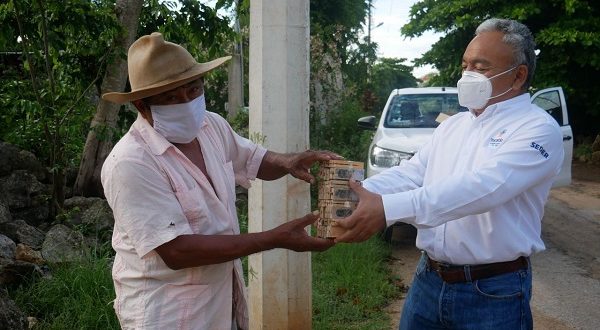 Tecoh, Yucatán, 20 de junio de 2020.- Los apicultores de Yucatán tienen el total respaldo de la administración que encabeza el Gobernador Mauricio Vila Dosal, con la distribución de 500 abejas reina entre quienes perdieron parcialmente sus colmenas, con los objetivos de recuperar, reactivar y fortalecer nuevamente esta actividad.