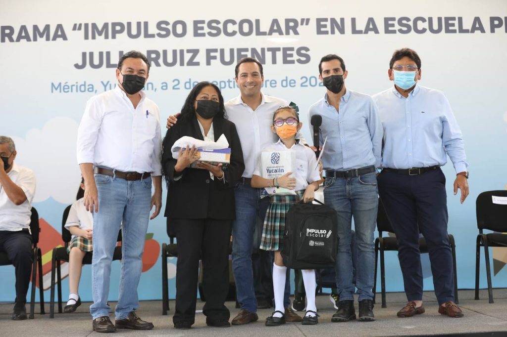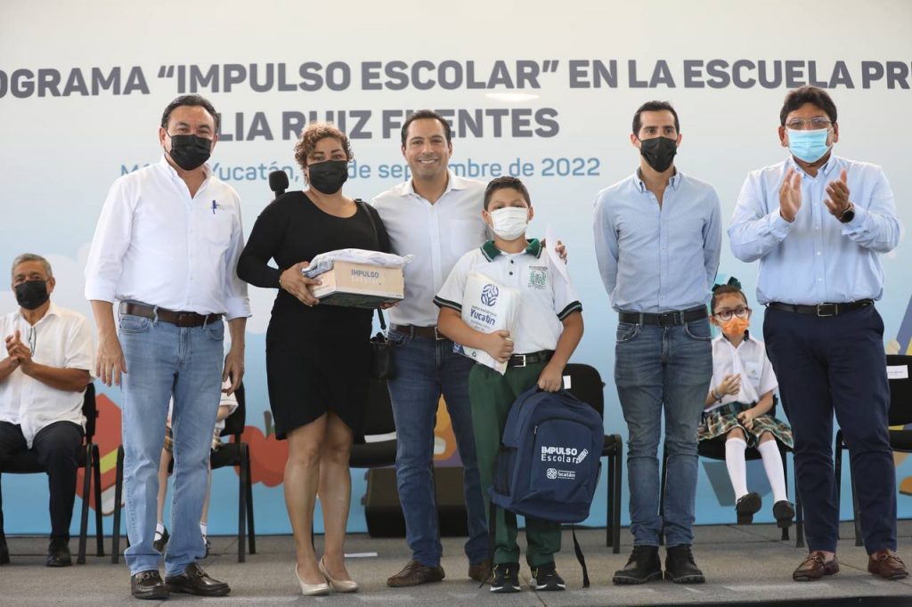 Mérida, Yucatán, 2 de septiembre de 2022.- Estudiantes yucatecos continúan recibiendo del Gobernador Mauricio Vila Dosal sus uniformes y paquetes de útiles escolares del programa Impulso Escolar, esquema que busca garantizar que todas las niñas y los niños del estado tengan las mismas oportunidades para su aprendizaje y desarrollo, al tiempo que es un importante alivio para el bolsillo de los padres y madres de familia, pues significa un ahorro de 2,850 pesos por cada estudiante.
