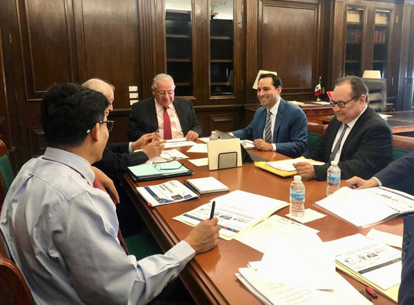 Acompañado por Ernesto Herrera Novelo, titular de la Secretaría de Fomento Económico y Trabajo (Sefoet) y Álvaro Juanes Laviada, coordinador General de Asesores, Vila Dosal se reunió con Marín Mollinedo, con quien dialogó sobre las oportunidades para hacer realidad este proyecto de desarrollo que busca atraer inversiones, fortalecer la economía y generar empleos en el estado.
