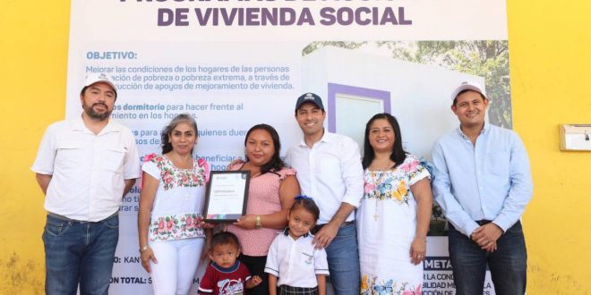 De igual forma, el Gobernador realizó la entrega de 65 acciones de vivienda en beneficio de 14 familias de Kantunil, que se suman a las más de 27, 600 familias que se han atendido en esta administración con la construcción de baños, cuartos adicionales, pisos firmes y cocinas ecológicas.