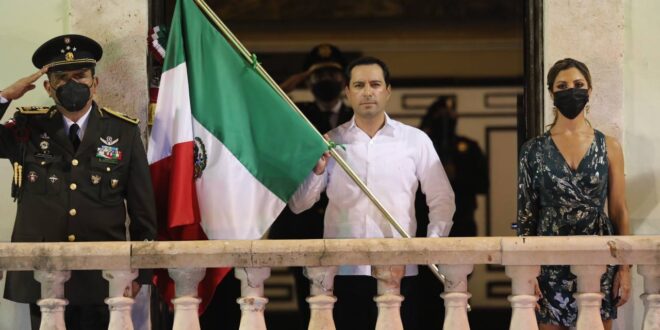 “¡Mexicanos, viva la independencia nacional!, ¡Vivan los héroes que nos dieron patria!, ¡Viva Hidalgo!, ¡Viva Morelos!, ¡Viva Guerrero!, ¡Viva Josefa Ortiz de Domínguez!, ¡Viva Yucatán!, ¡Viva la soberanía nacional!, ¡Viva México, viva México, viva México!”, expresó el Gobernador para posteriormente ondear la bandera mexicana e hizo repicar la campana.