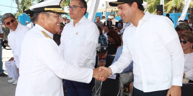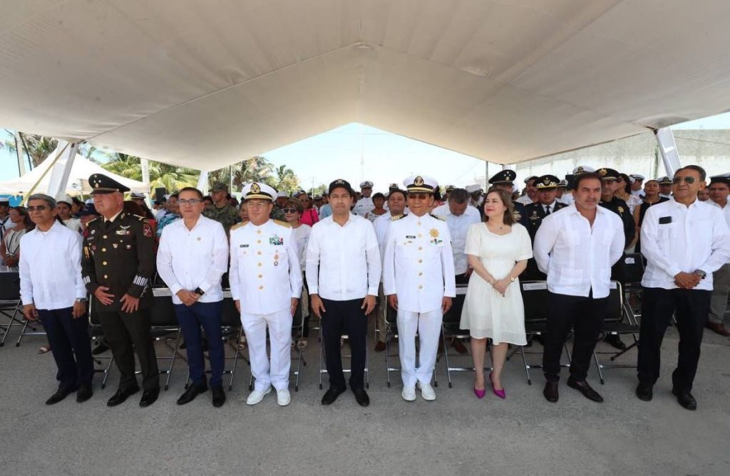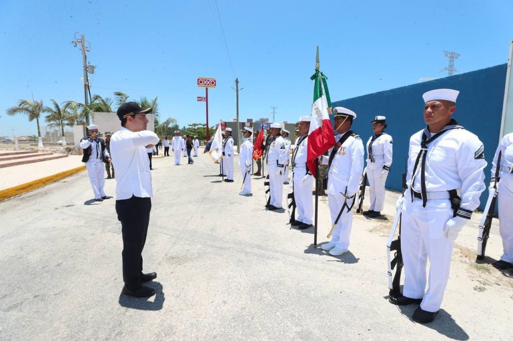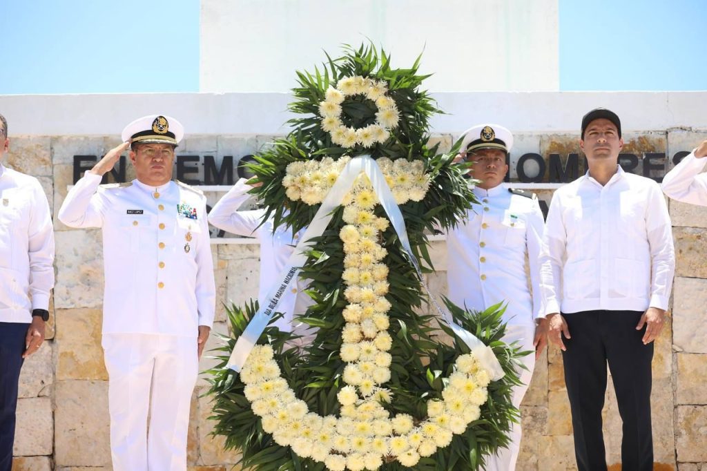 En el puerto de Yucalpetén, Vila Dosal y Báez López colocaron una ofrenda floral en honor a los marinos caídos en el cumplimiento de su deber y refrendaron el compromiso de seguir trabajando en equipo, con tal de seguir sentando las bases de un futuro próspero para las familias de la entidad e impulsar el desarrollo local desde la costa.