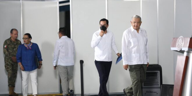 Durante su acostumbrada rueda de prensa mañanera, que este día se realizó en la Base Aérea Militar Número 8, al sur de esta ciudad, el jefe del Ejecutivo federal destacó que como muestra de esta coordinación de la Federación con la administración estatal, se está invirtiendo en el territorio como no sucedía en mucho tiempo a través de importantes proyectos como la ampliación del Puerto de Altura de Progreso, la construcción de 2 plantas termoeléctricas, un gasoducto hacia la Península, así como los tramos del Tren Maya que pasan por el estado.