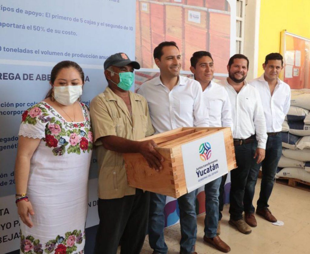 Por otra parte, mediante el plan Apoyo para la Adquisición de Equipo Apícola, el Gobernador dio seguimiento a la entrega de un total de 25,000 cajas de abejas completas, para incrementar la infraestructura productiva, en beneficio de 5,000 hombres y mujeres dedicados a esta labor. En esta ocasión, se distribuyeron 230 cajas, así como 300 abejas reina para apoyar a los productores de esta demarcación.