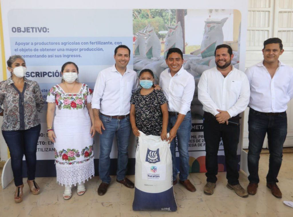 Para continuar impulsando la siembra de nuevos cultivos que permitan la comercialización y el autoconsumo para familias yucatecas, Vila Dosal continuó con la entrega de sacos de fertilizantes en esta demarcación, como parte de un plan que apoya a más de 10,000 hombres y mujeres dedicados a las actividades agrícolas en 25 municipios del estado.
