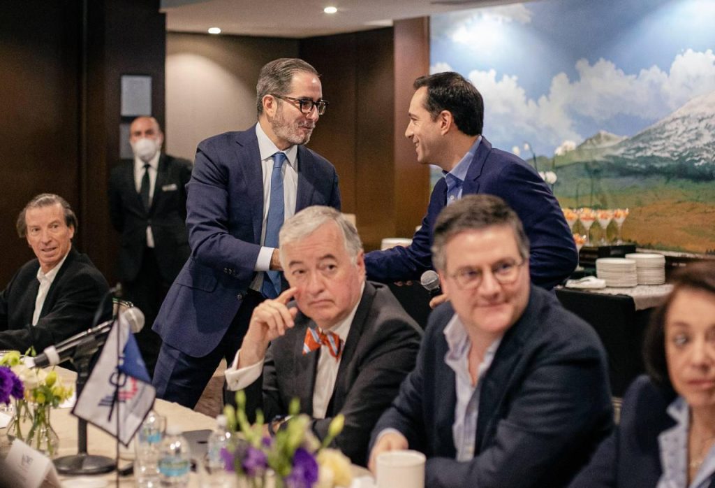 Ciudad de México, 13 de marzo de 2023.- El Gobernador Mauricio Vila Dosal se reunió con integrantes del Consejo Consultivo y líderes del Consejo Nacional Empresarial Turístico (CNET), ante quienes presentó las ventajas competitivas y oportunidades que ofrece Yucatán para la llegada de nuevas inversiones, que generen empleos para las familias.
