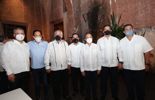 Mérida, Yucatán, 16 de noviembre de 2021.- El Gobernador Mauricio Vila Dosal recibió esta noche a los gobernadores de Quintana Roo, Carlos Joaquín González; Tamaulipas, Francisco Javier García Cabeza de Vaca; Guanajuato, Diego Sinhué Rodríguez Vallejo; Hidalgo, Omar Fayad Meneses; y Michoacán, Alfredo Ramírez Bedolla, quienes ya se encuentran en Yucatán para participar en el Tianguis Turístico, que iniciará mañana martes.