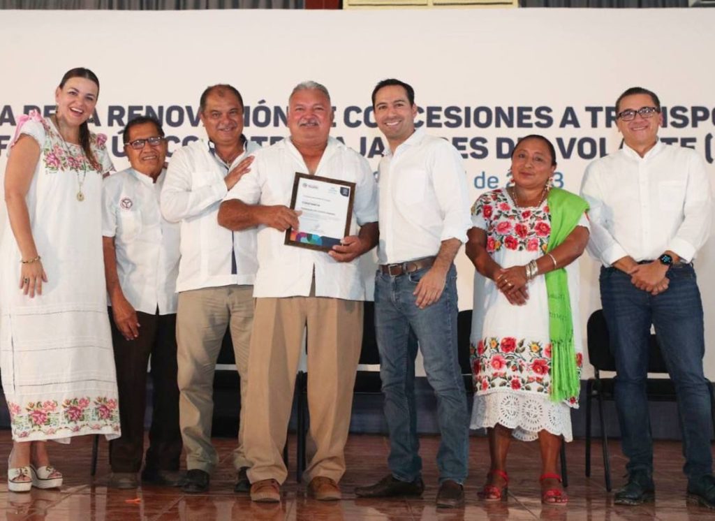Mérida, Yucatán, 29 de abril de 2023.- Para continuar con la transformación de la movilidad y el transporte público en el estado, además de dar certeza jurídica a las familias que dependen del ingreso generado por el servicio, el Gobernador Mauricio Vila Dosal otorgó 1,433 certificados de renovación de concesiones a socios del Frente Único de Trabajadores del Volante (FUTV).