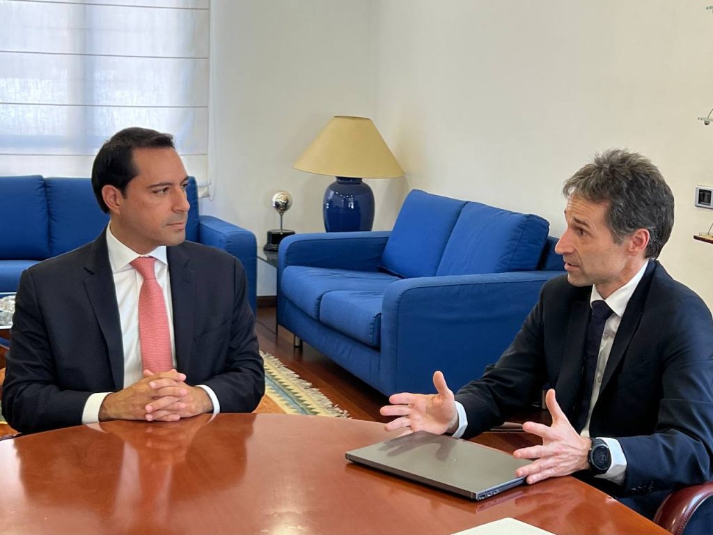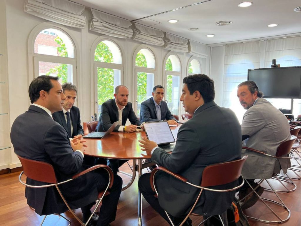 Barcelona, España, 10 de junio de 2023.- En el marco de la Cumbre Mundial del Transporte Público en Barcelona, España, el Gobernador Mauricio Vila Dosal se reunió con el director de Irizar e-mobility, Iñigo Etxeberría, donde verificó que la unidad cabeza de serie del Ie-tram cumpla con las características exclusivas para Yucatán y así poder continuar con la producción de los vehículos que serán parte de la nueva ruta del Sistema de Transporte “Va y Ven”, única en su tipo en toda Latinoamérica y la primera en todo el sureste del país 100% eléctrica.