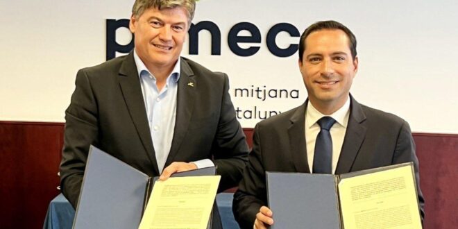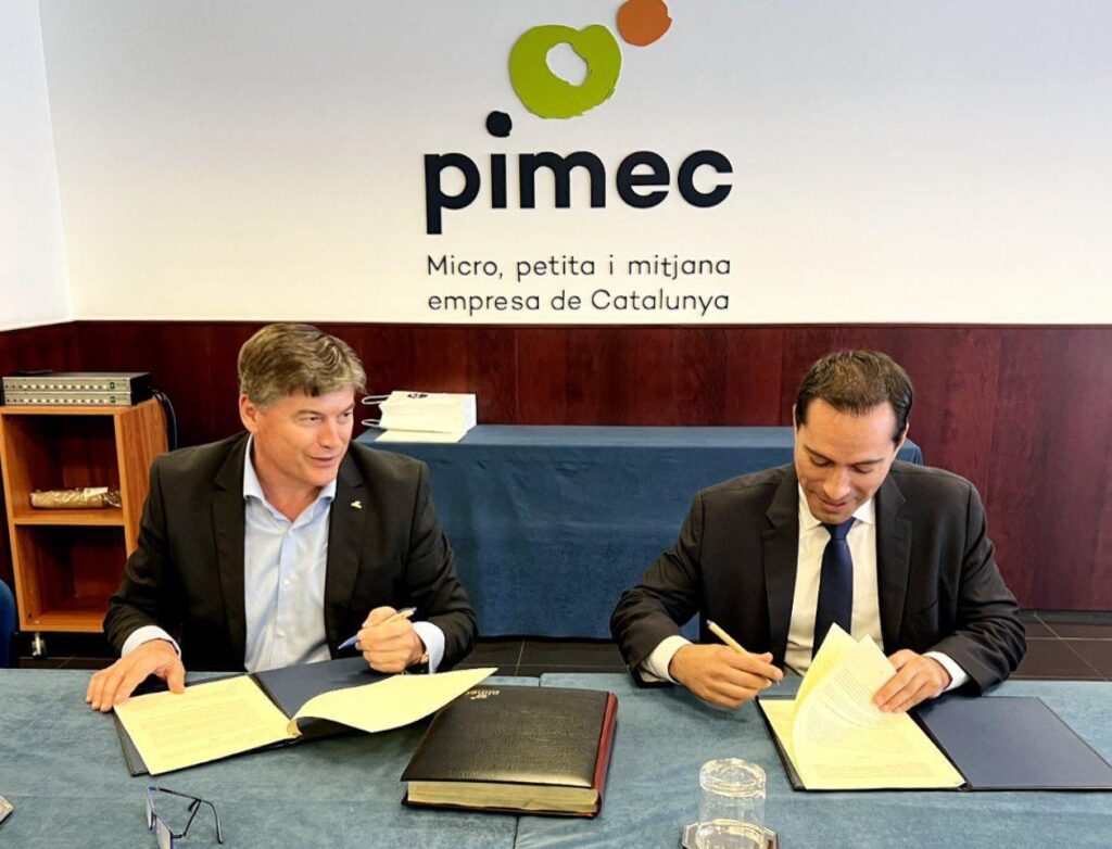Vila firma convenio con la Confederación Patronal de Micro, Pequeña y Mediana Empresa de Cataluña para atraer más inversiones y generar empleos para los yucatecos