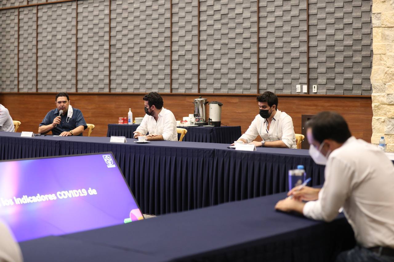 Durante la reunión, el Gobernador presentó los avances de los indicadores COVID19, así como un análisis de la evolución que han tenido en las últimas semanas, donde recalcó que estamos en niveles manejables para el sistema de salud, pero si no se pone un alto en este momento, los contagios y hospitalizaciones seguirán incrementando de manera exponencial en los siguientes días, lo que pondría en riesgo la capacidad hospitalaria en el estado.
