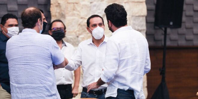Acompañado del titular de la Secretaría Técnica de Planeación y Evaluación (SEPLAN), Rafael Hernández Kotasek, y del coordinador General de Asesores, Álvaro Juanes Laviada, el Gobernador destacó que el diálogo siempre ha estado presente con los representantes de los diferentes sectores de Yucatán y, de acuerdo a lo firmado en el Acuerdo de Reapertura Económica Segura en Yucatán, todas las medidas se han informado al Consejo Coordinador Empresarial (CCE) previo a que sean implementadas.
