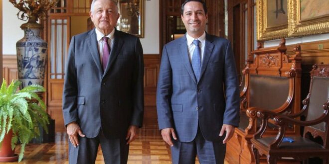 -Vila Dosal y López Obrador abordaron temas relacionados con el Tren Maya y la ampliación del Puerto de Altura de Progreso y reubicación del Aeropuerto de Mérida.