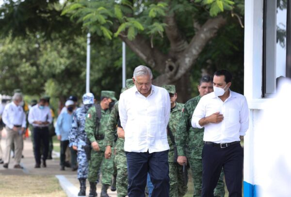 En esa instalación militar, Vila Dosal sostuvo un encuentro con el primer mandatario, el secretario de la Defensa Nacional, General de División Luis Crescencio Sandoval González y el director del Fondo Nacional de Fomento al Turismo (Fonatur), Rogelio Jiménez Pons, en donde los representantes de las empresas constructoras de dichos tramos presentaron un reporte de los avances que se tienen en estas obras.