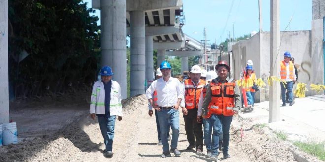 -Vila Dosal constató el avance de esta obra donde inició la colocación de las trabes del último tramo.