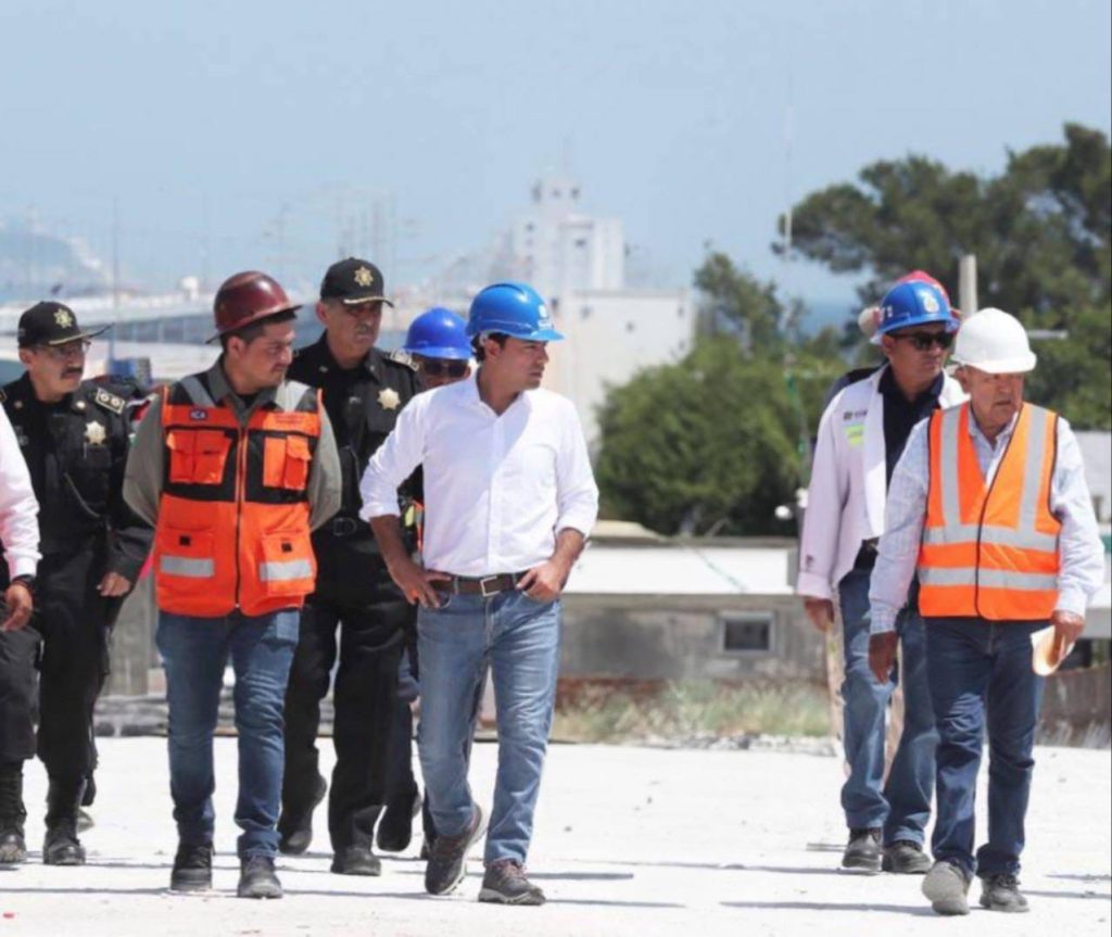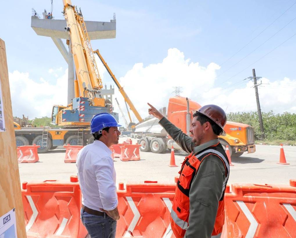 Acompañado del delegado de la Secretaría de Infraestructura, Comunicaciones y Transportes (SICT), Luis Manuel Pimentel Miranda, Vila Dosal constató las labores de colocación de las trabes del último tramo de esta importante obra que permitirá volver más eficiente y segura la entrada y salida a esta localidad y su puerto de altura, las cuales contribuirán a aminorar el deterioro de las vialidades, el ruido excesivo y la contaminación ocasionada por los de carga pesada que transitan diariamente por las calles.