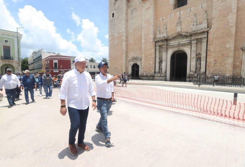 Mauricio Vila supervisa obras de la Plaza Grande de Mérida, que avanzan a buen ritmo
