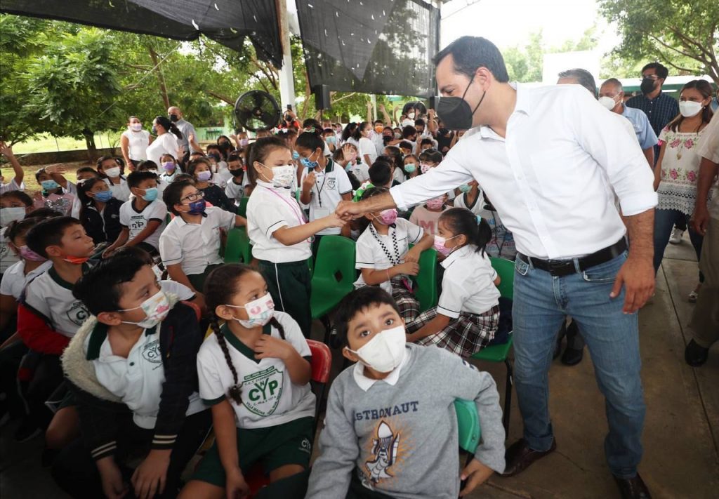 En su mensaje, el Gobernador señaló que a través de este esquema se asegura que todos los niños y las niñas de Yucatán cuenten con lo necesario para iniciar el ciclo escolar y que la falta de útiles escolares, zapatos y uniformes no sea un motivo para dejar la escuela y así, toda la niñez cuente con las mismas oportunidades para salir adelante.