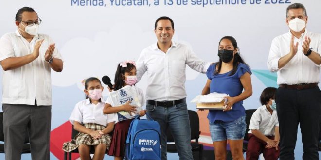 Con el programa “Impulso Escolar” se busca que ninguna niña, niño ni joven se quede sin sus útiles escolares y cuenten con lo necesario para acudir a clases, al tiempo que promueve la economía en el interior del estado con más de 2 mil familias de artesanos yucatecos textiles y de calzado que trabajan en 90 talleres de 13 municipios del estado al ser los encargados de fabricar estas piezas con buena calidad.