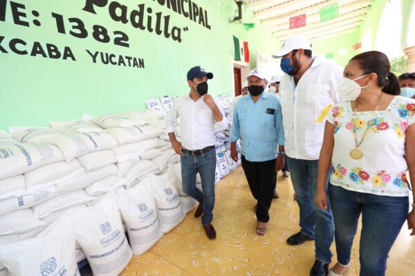 -En gira de trabajo por el municipio de Yaxcabá, Vila Dosal supervisó la entrega de semillas certificadas de frijol y chile habanero, así como de sacos de maíz para autoconsumo y certificados de vivienda para las y los yucatecos que más lo necesitan.