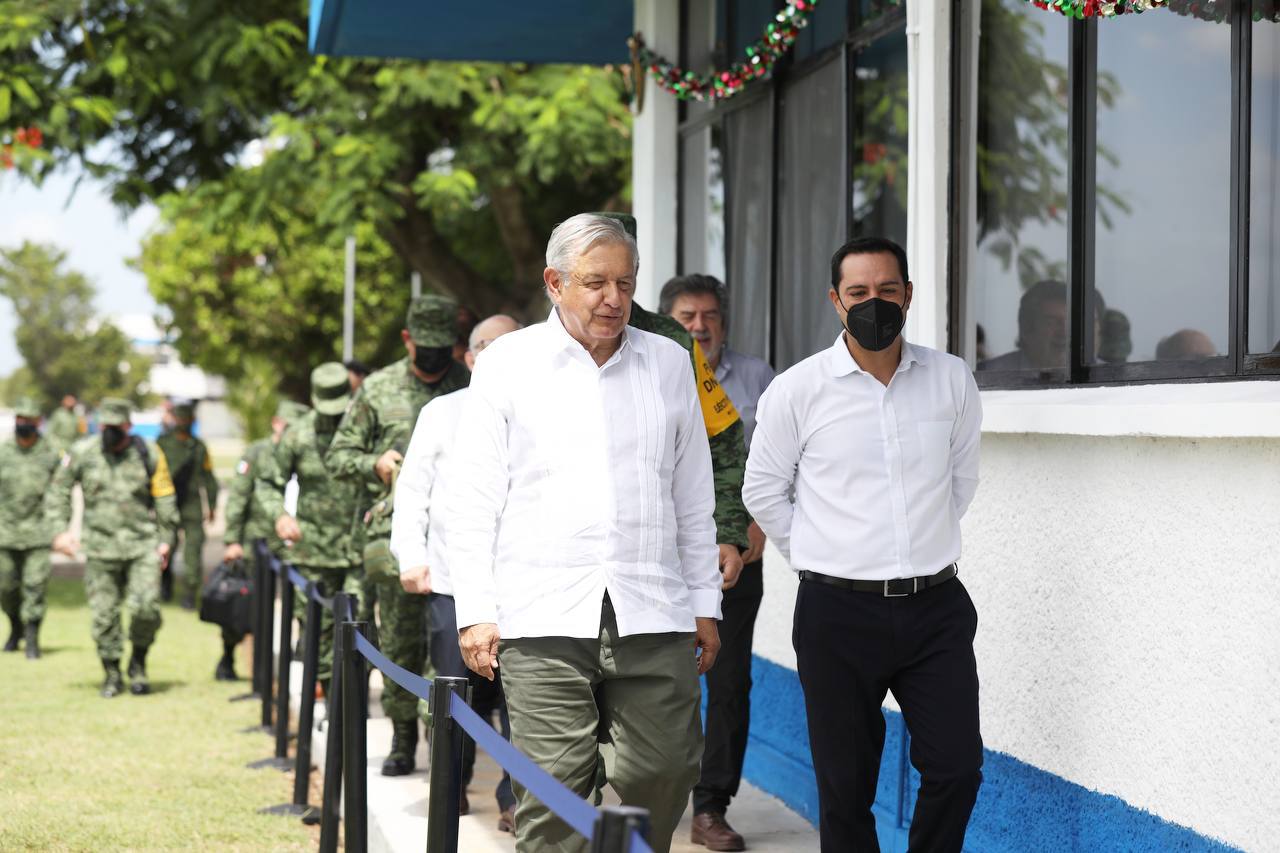 -En la Base Aérea Militar Número 8 en Mérida, Vila Dosal y López Obrador evaluaron los avances en los trabajos de construcción del tramo 3 Calkiní-Izamal de esa obra de infraestructura ferroviaria.