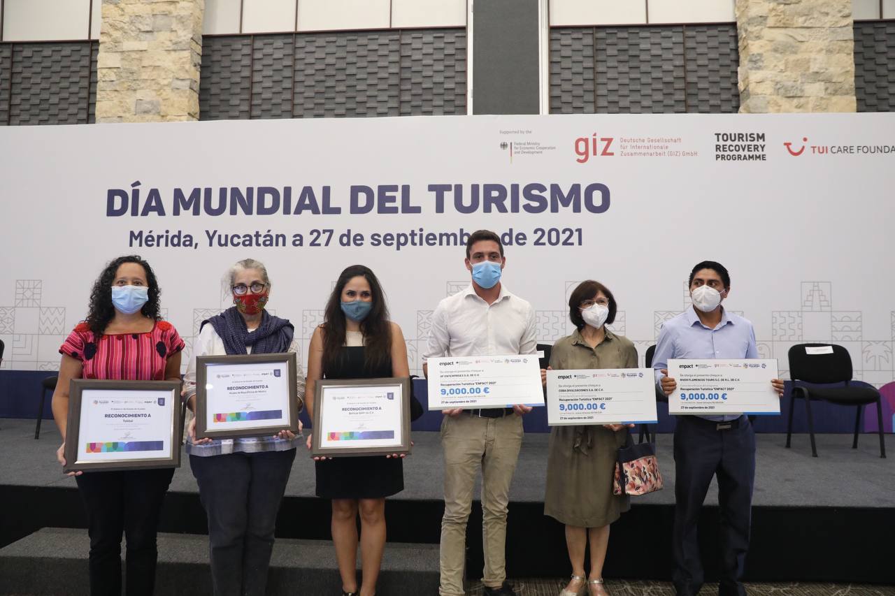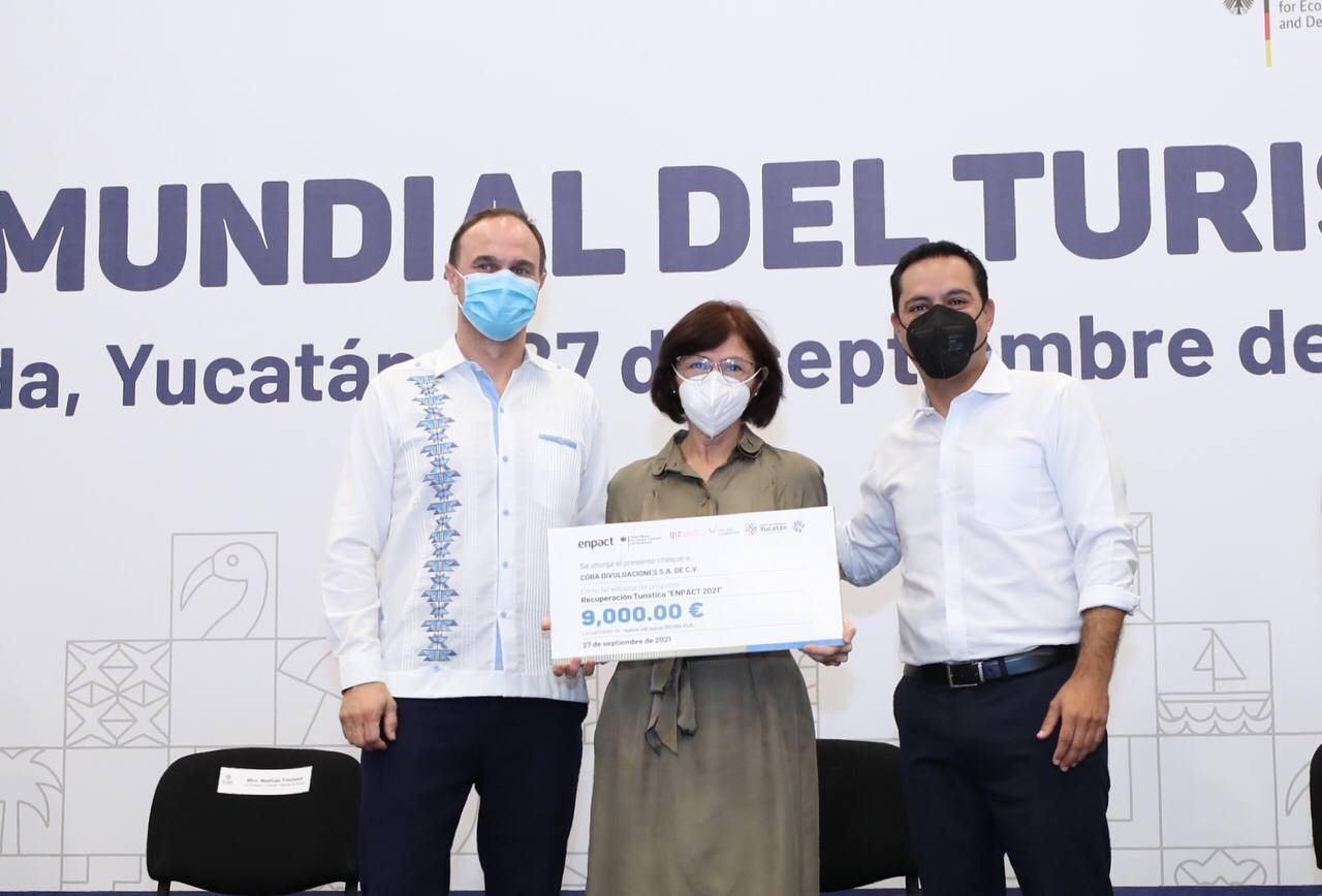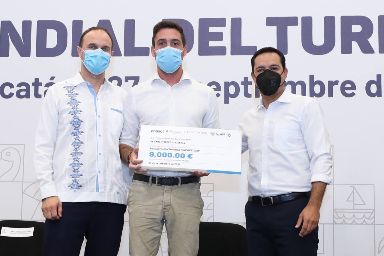 En el marco del Día Mundial del Turismo, que tiene como lema “Turismo para un crecimiento inclusivo”, el Gobernador Mauricio Vila Dosal, acompañado de Matthias Treutwein, cofundador y director de Enpact, que es una organización no gubernamental alemana, entregaron estímulos económicos a los 20 negocios turísticos correspondientes a la convocatoria del 2021, al tiempo que reconocieron a los 15 que fueron seleccionados el año pasado. Cada una de las empresas yucatecas beneficiadas recibe 9,000 euros, lo que equivale a 211,590 pesos al tipo de cambio actual.