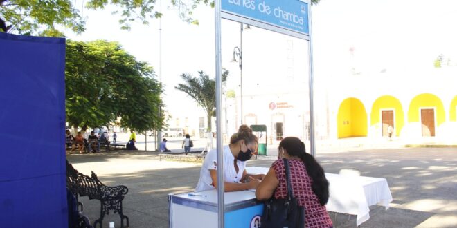 Umán, Yucatán a 4 de octubre..- Desde temprana hora y con la participación de empresas de diversos giros, en la explanada principal de la Ciudad de Umán, dio inicio el Programa “Lunes de Chamba”, un proyecto insignia del Honorable Ayuntamiento de Umán 2021-2024 que encabeza el Alcalde, Dr. Gaspar Ventura Cisneros Polanco y que se llevó a cabo a través de la Dirección de Desarrollo Social en coordinación con la Jefatura de Economía y Orientación al Emprendedor.