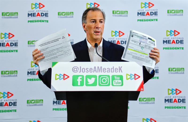 Con documentos en mano del Registro Público de la Propiedad, José Antonio Meade, candidato de la Coalición Todos por México, presentó evidencias de que Andrés Manuel López Obrador, candidato de la Coalición Juntos Haremos Historia, es dueño de dos departamentos en el sur de la Ciudad de México, por lo que exigió que se los entregue, como lo prometió en el debate presidencial.
