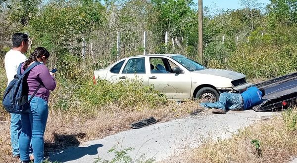 Kinchil, Yuc., 24 de marzo 2020.- Aparte que tienen que estar avispas ante el Coronavirus, la mañana de ayer médicos del centro de salud de Kinchil pudieron librar con suerte un accidente a bordo de un vehículo Derby, tras salirse en la vía estatal Kinchil – Samahil.