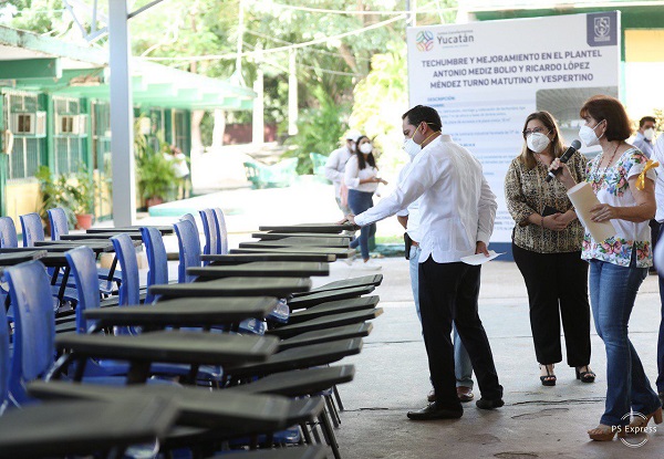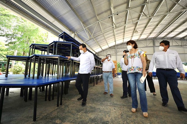 En gira de trabajo por la Sultana del Oriente, Vila Dosal otorgó dichos muebles en la escuela secundaria de turno matutino “Antonio Mediz Bolio” y vespertino “Ricardo López Méndez”, en donde también entregó un domo que cubre la plaza cívica y en el que se invirtieron 2.1 millones de pesos.