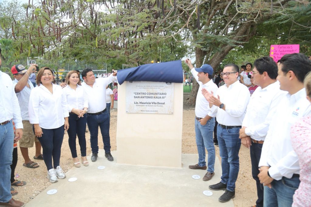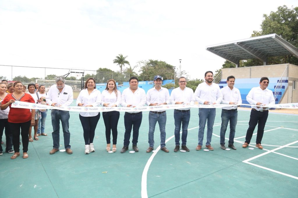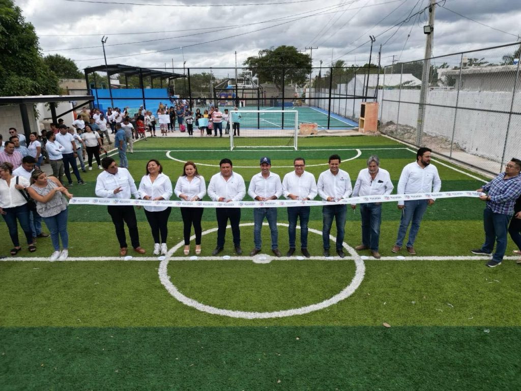 Kanasín, Yucatán, 9 de enero 2024.- A fin de promover la sana convivencia entre las familias de esos sitios, fueron inaugurados los nuevos Centros Deportivos Comunitarios de San Antonio Kaua III, Vivah y Cuauhtémoc, lo que representa un nuevo paso para que Kanasín siga avanzando y consolidándose como un municipio con más y mejor infraestructura pública.