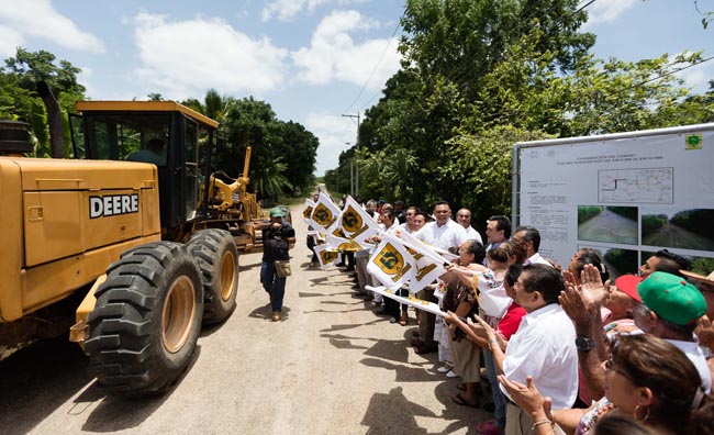 En gira de trabajo por el oriente de la entidad, el Gobernador Rolando Zapata Bello dio el banderazo para iniciar la reconstrucción de 18 kilómetros en los tramos Tiholop-San Pedro-Kanakom, donde se invierte casi 16 millones de pesos para reducir el tiempo de recorrido de 60 minutos a 30, así como la rehabilitación de 12 kilómetros de la carretera que conecta Yaxcabá-Tahdzibichén, con un recurso cercano a los 10 millones de pesos.