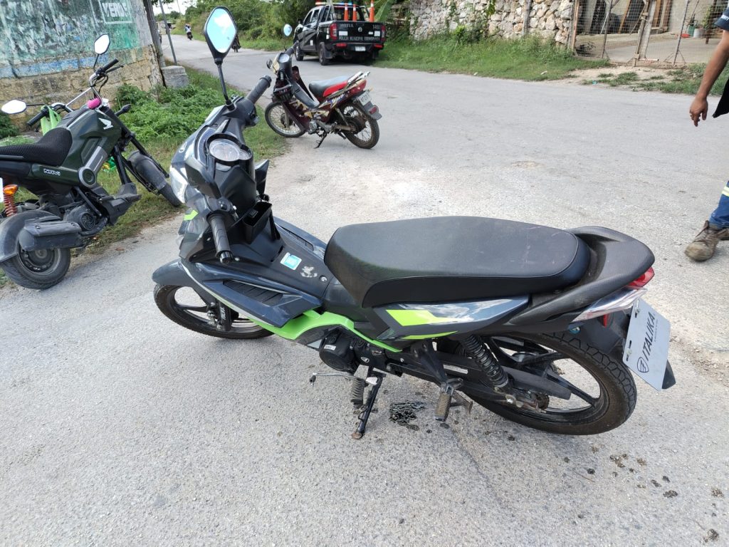 MOTUL, Yuc., 18 de enero 2024.- Los hechos se dieron la tarde de este viernes cuando el menor conducía su Motocicleta weve honda de oriente a poniente y al no respetar la señal de alto ocasionó que sea colisionado por la moto Italika 110 c.c, que circulaba de norte a sur con sobre cupo, 3 menores en la moto y un adulto.