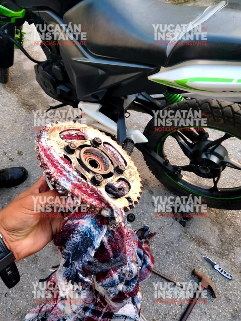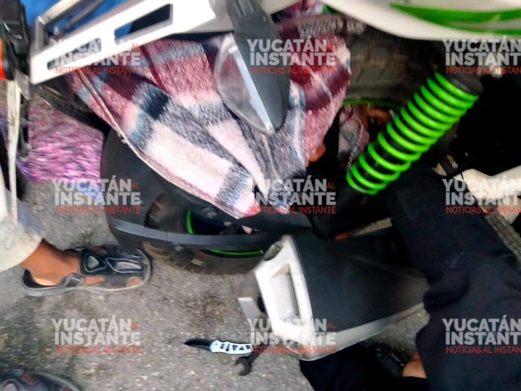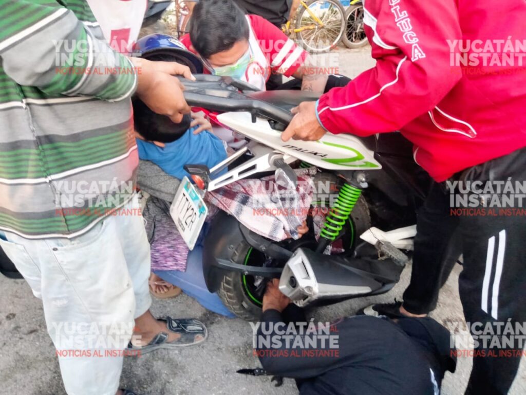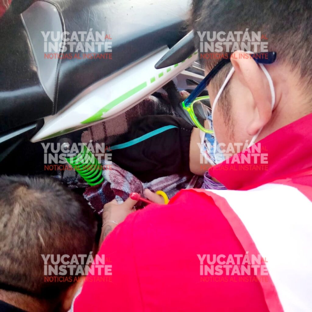 Hunucmá, Yuc., 18 de diciembre 2021.- De esos accidentes con suerte se registró este amanecer cuando un menor que era trasladado por sus padres a bordo de una motocicleta, quedó atrapado en la llanta trasera, al enredar el cobertor con el cual estaba tapado.