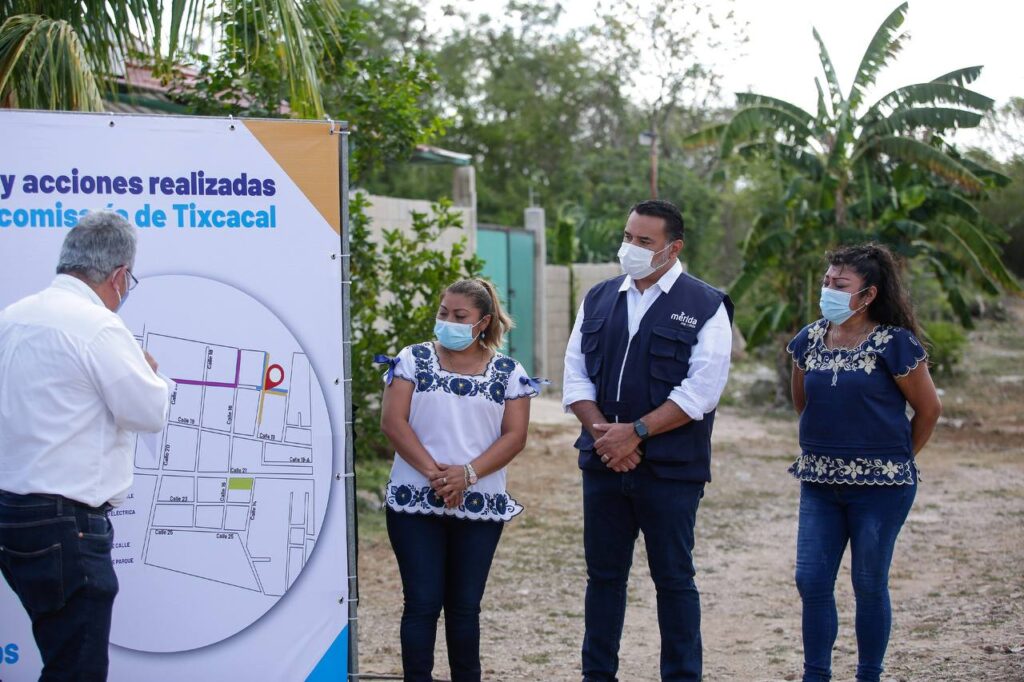 Ante la presencia de la comisaria Gladys Asunción Canto Uc y habitantes de la comunidad, señaló que la importancia y trascendencia de las obras que se llevan a cabo en Tixcacal y otras comisarías de Mérida, radica en seguir aportando al desarrollo social y económico de la zona rural del Municipio, que permita alcanzar el rezago cero.