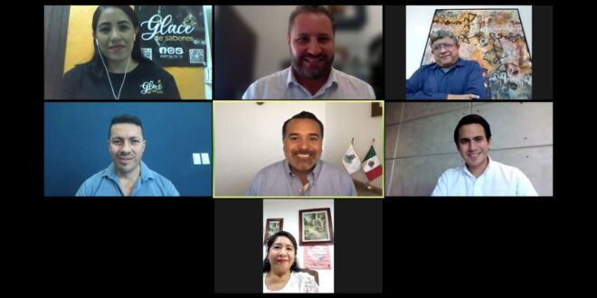 En la reunión virtual, también participaron el regidor Álvaro Cetina Puerto; los directores José Luis Martínez Semerena, de Desarrollo Económico y Turismo e Irving Berlín Villafaña, de Cultura: Óscar Cambranes Basulto, secretario ejecutivo del Comité Permanente del Carnaval de Mérida; así como, Aceneth García y Elvira Chan, emprendedoras participantes de ediciones pasadas de “Soy Parte de los 100”.