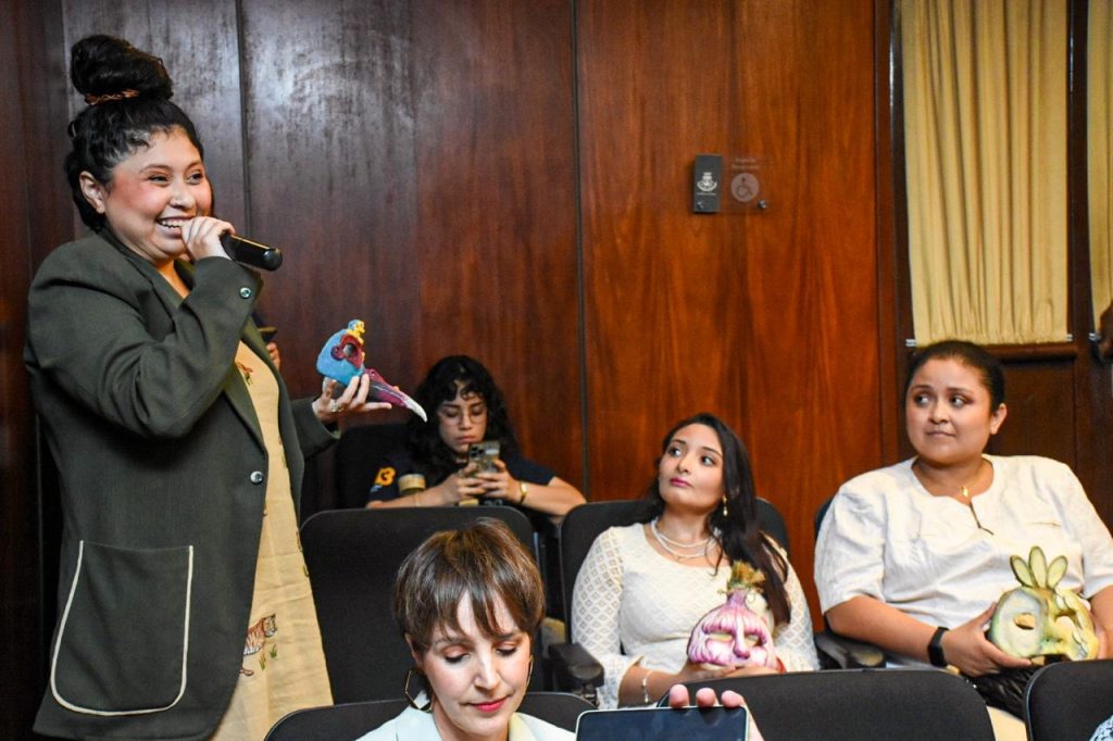 De los cinco proyectos seleccionados de la modalidad de Promoción, Dana Alexandra Góngora del proyecto “Sujuy Ja’” (Agua Sagrada) expuso que se trata una pieza performática musical, cantada y narrada casi en su totalidad en lengua maya, en la que se cuentan historias de la cultura maya sobre el agua, desde su uso concebido como recurso sagrado hasta el tratamiento indebido que se le da en la actualidad. Involucra a artistas yucatecos y de otros países, bajo la dirección de Miranda Lakerwed.