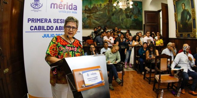 En un hecho histórico para Mérida, el Presidente Municipal encabezó esta tarde la primera sesión de Cabildo Abierto, realizada en el salón de Cabildo “Rosa Torre González”, en la que participaron las y los ciudadanos María Esther Trejo Manubes; Adán Rodríguez Ruiz y Luisa Teresa Denegre Vaugth Charruf, representante de la Organización Mundo y Conciencia, A.C. y la Red Ciudadana por la Sostenibilidad de Yucatán, quienes presentaron propuestas relativas a la protección al medioambiente, tema principal de la sesión.