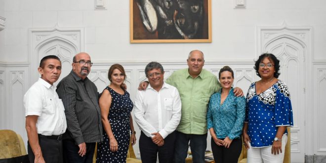 El Director de Cultura Antrop. Irving Berlin Villafaña, quien encabeza la delegación yucateca que participa en la actividad que se realiza en la isla caribeña, sostuvo hoy un encuentro con el Ministro de Cultura de la República de Cuba, Sr. Alpidio Alonso Grau, a quien extendió saludos a nombre del Alcalde Renán Barrera Concha y la voluntad para trabajar intercambios culturales con la isla en materia de enseñanza de las artes, la música y la danza.