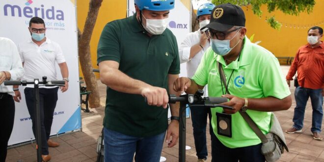 Al poner en marcha los recorridos turísticos con scooter eléctricos por Paseo de Montejo, el Presidente Municipal celebró que más empresarios jóvenes apuesten por nuestra ciudad y ofrezcan propuestas nuevas e innovadoras como es el caso de la agencia de servicios turísticos “Montejo Tours”, empresa que tiene a su cargo dicho proyecto y que lleva a cabo con el apoyo del Ayuntamiento de Mérida.