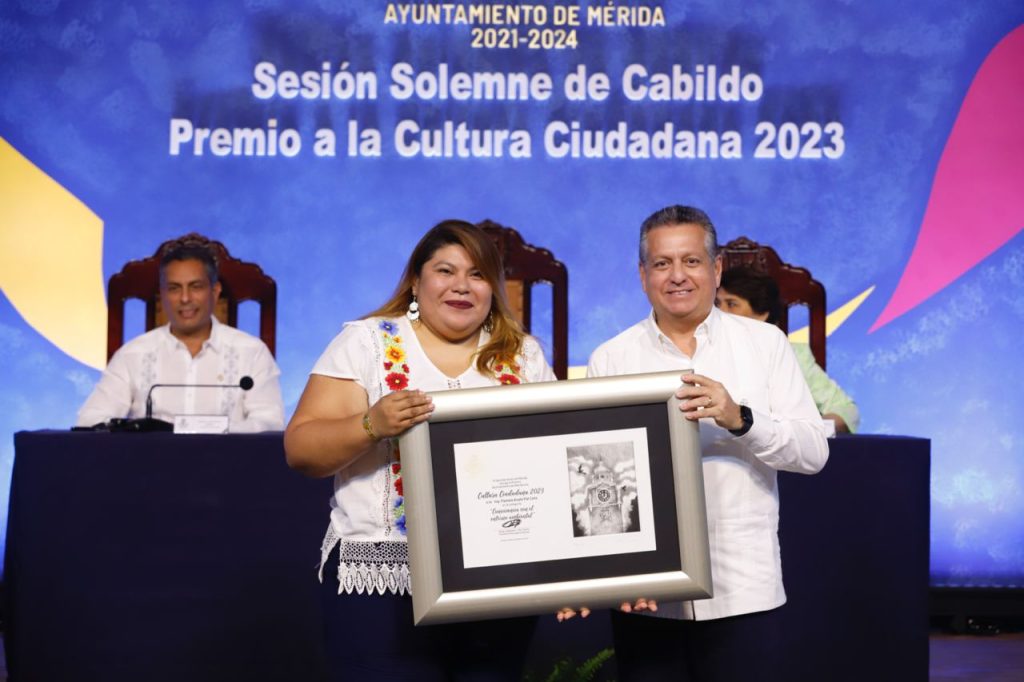 Asimismo, recordó que el “Premio Ayuntamiento de Mérida a la Cultura Ciudadana” se creó en 2013 para reconocer a las y los habitantes del Municipio de Mérida, personas morales, asociaciones civiles, organizaciones no gubernamentales y colectivos sociales que por su labor han contribuido a la preservación, el desarrollo y la difusión de los valores cívicos y culturales en el ámbito del Municipio de Mérida.