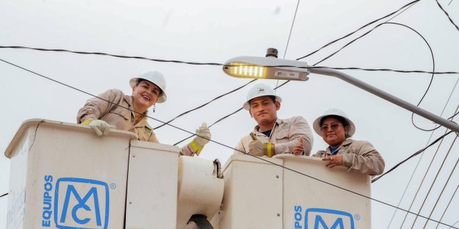 -La Presidenta Municipal participó en el proceso de instalación de las primeras de 80 lámparas que sustituyen a las de vapor de sodio en la colonia Emiliano Zapata Sur.