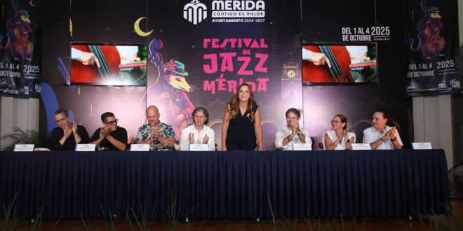 Mérida, Yucatán, 11 de septiembre de 2025.- La capital yucateca vibrará a un ritmo diferente del 1 al 4 de octubre con el Festival de Jazz Mérida 2025, una nueva propuesta cultural que incluye conciertos, charlas magistrales y un desfile con jazz tradicional estilo Nueva Orleans, de forma gratuita para toda la familia, informó la presidenta municipal Cecilia Patrón Laviada y músicos que participarán en esta primera edición.