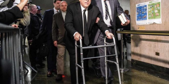 El sexagenario llegó caminando con la ayuda de un andador a la sala de audiencias del tribunal de Manhattan donde se espera se desarrolle su juicio durante unas seis semanas.
